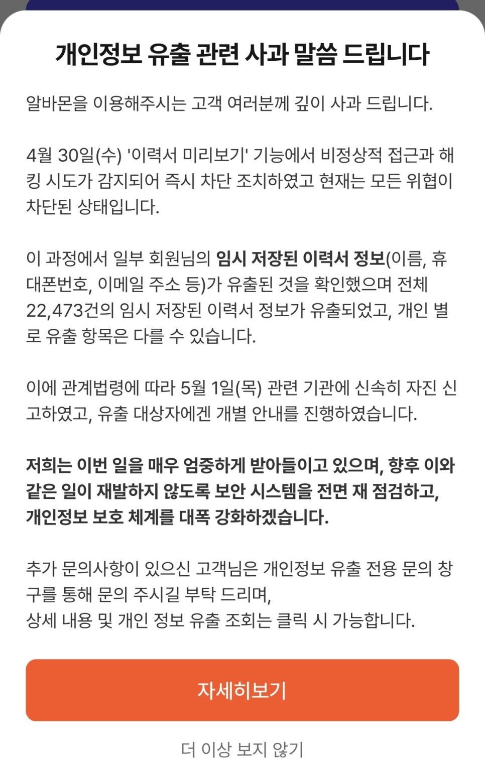 알바몬도 유출터졌다는데?