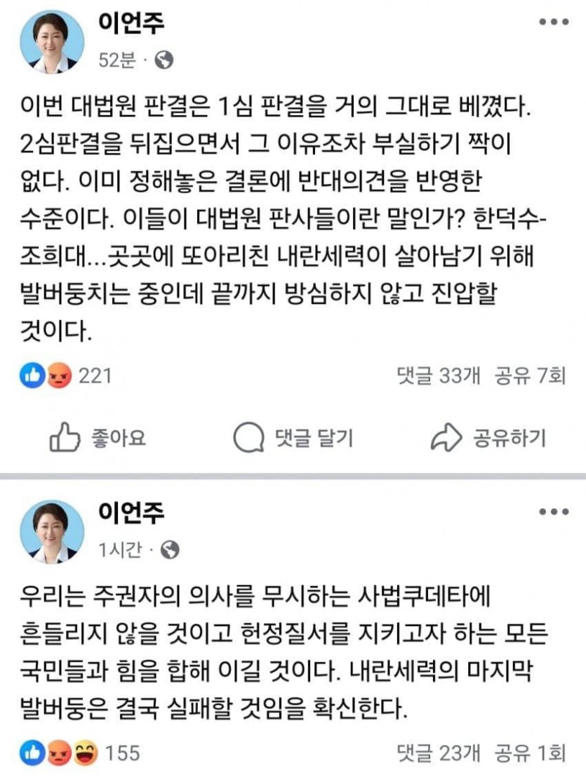 이언주 분노 . . . 1심 판결을 거의 그대로 베꼈다