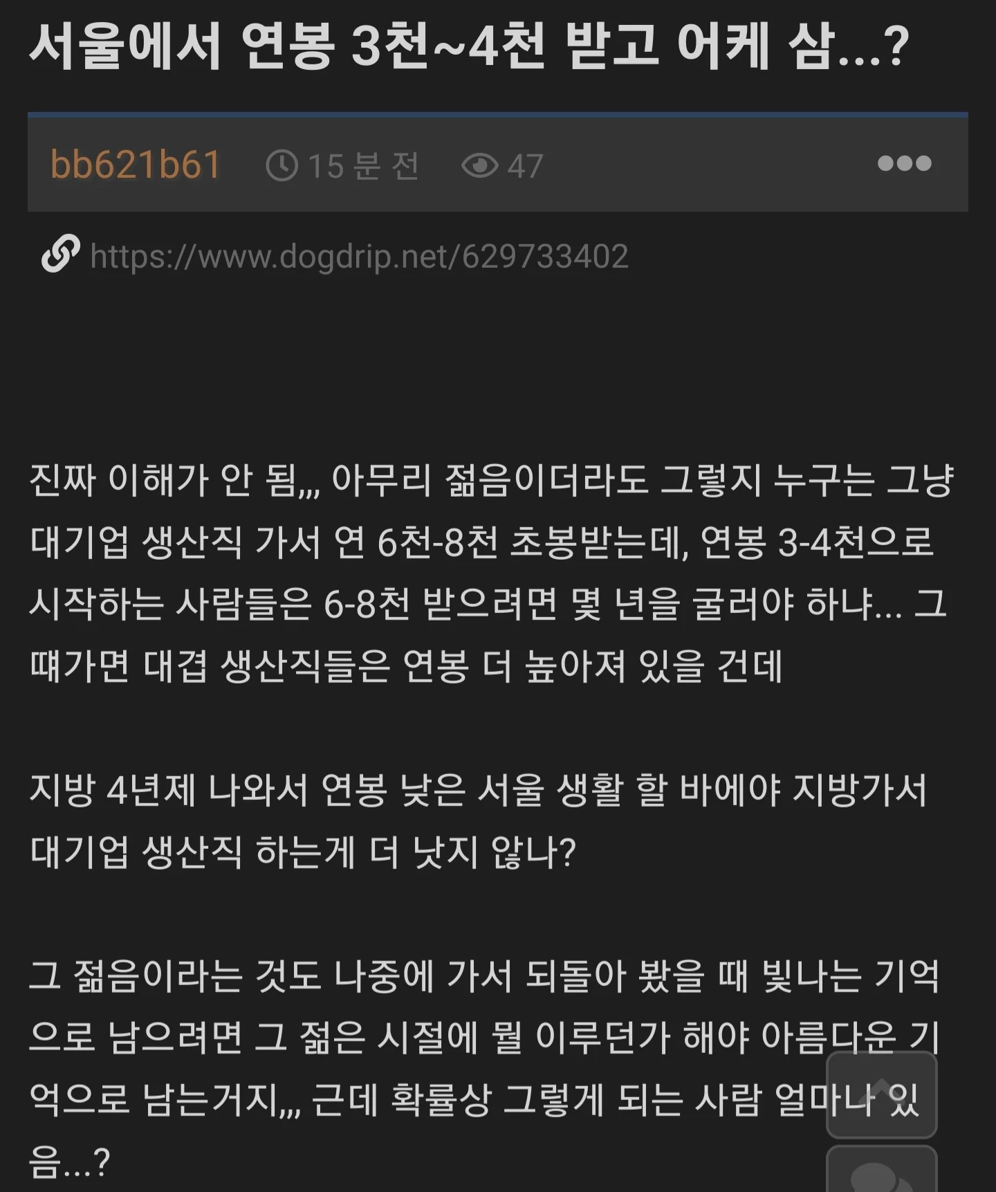 서울에서 연봉 3~4천 받고 어떻게 삼?