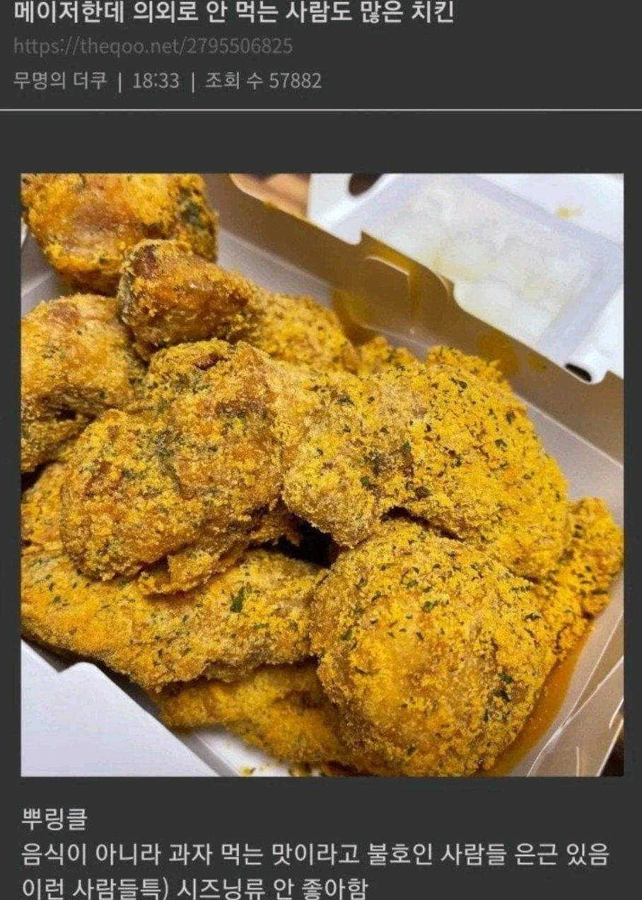 메이저한데 의외로 안 먹는 사람도 많은 치킨