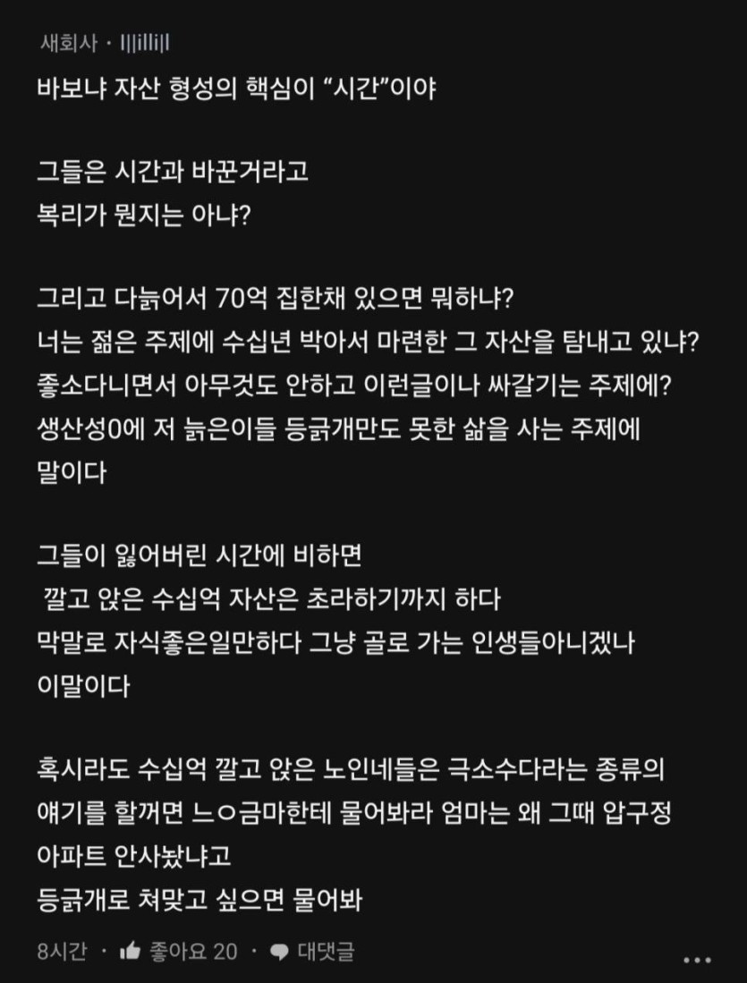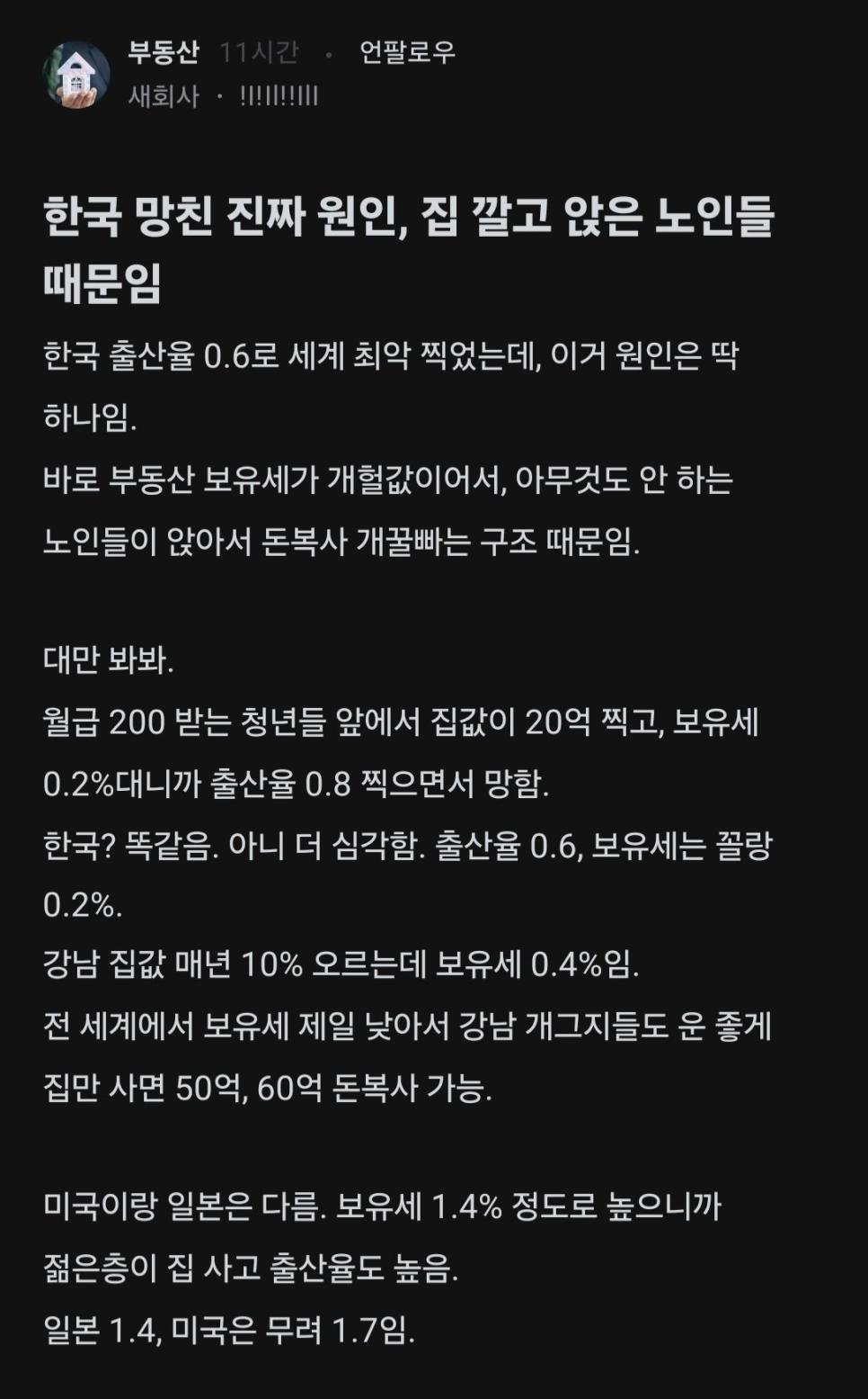 한국 망친 진짜 원인은 집 깔고 앉은 노인들 때문임.blind