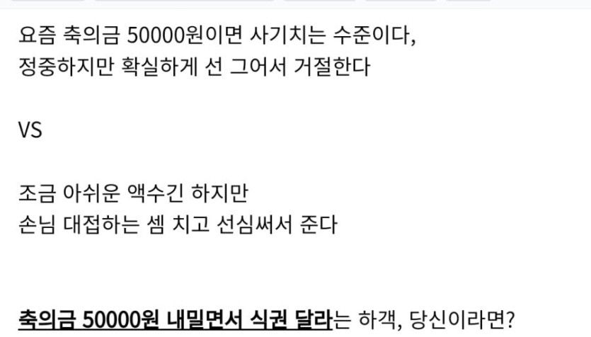 결혼식 축의금 50000원 내면서 식권 달라는 하객