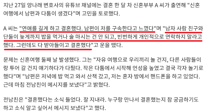 신혼여행서 전남친에 '남편 몰래 만나자' 답장…빈말인데 남편은 이혼 통보.