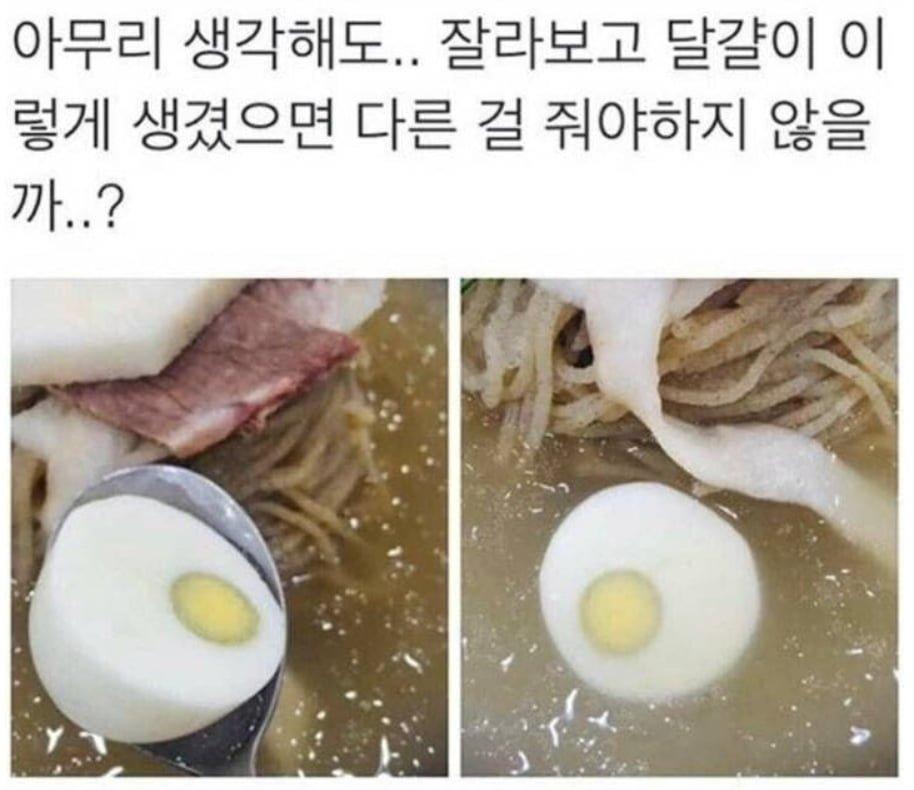 냉면 계란이 이상함