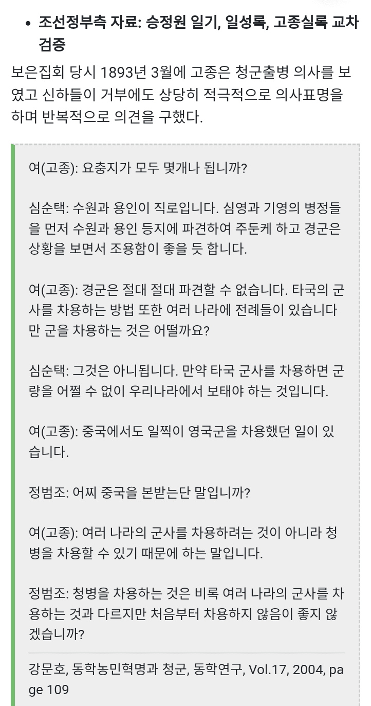 고종은 청군 불러온적 없다는 날조에 빡친 박사가 논문퍼레이드했다는게 학계 정설