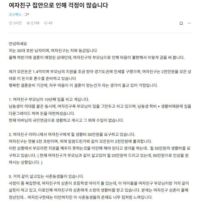 여자친구 집안으로 인해 걱정이 많습니다
