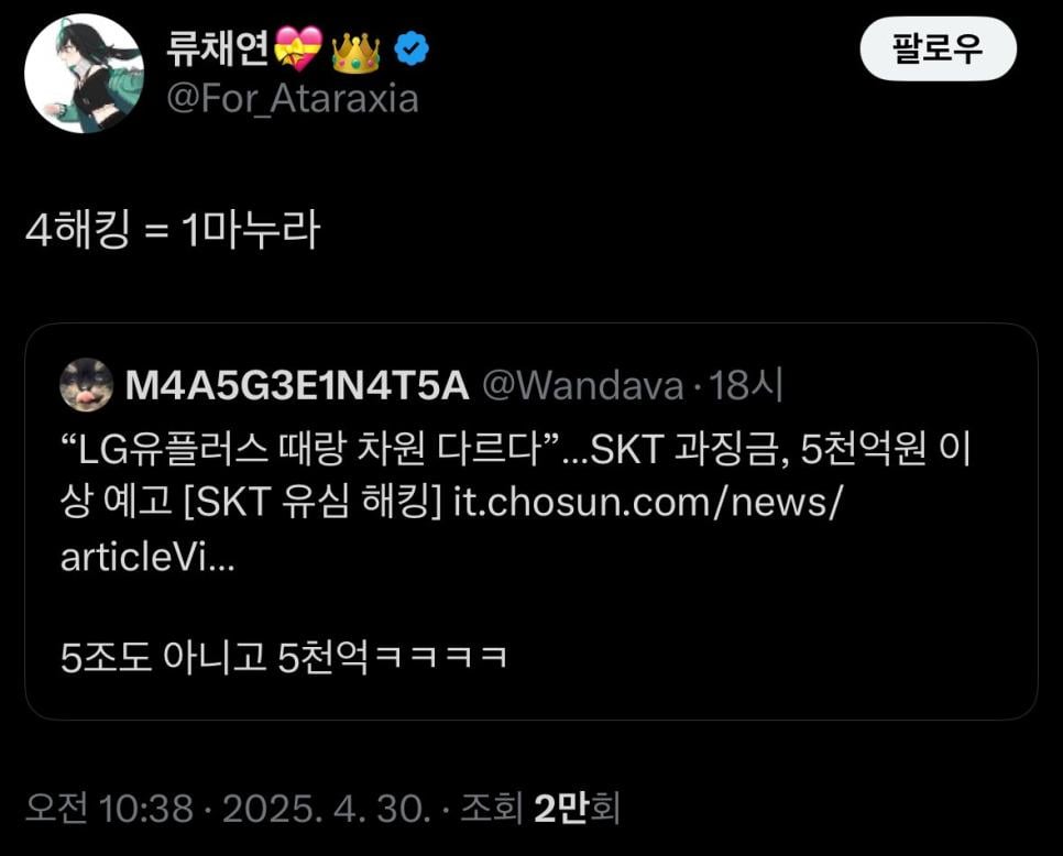 최태원 놀리다가 계정 정지먹은 트위터리안