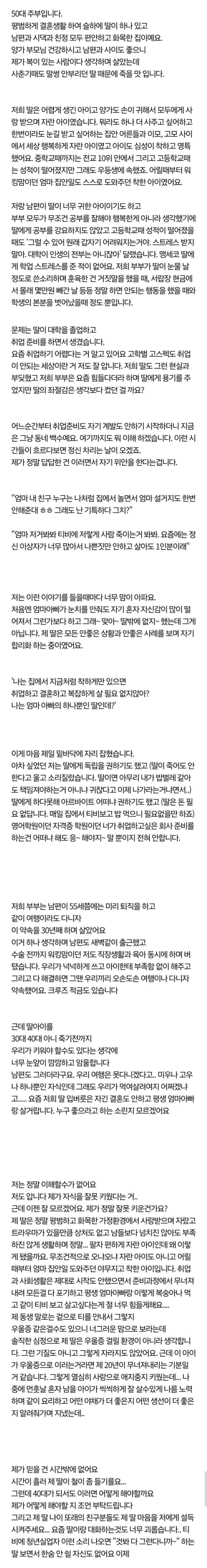 취업 안 하는 딸 때문에 죽을 맛이라는 엄마..jpg