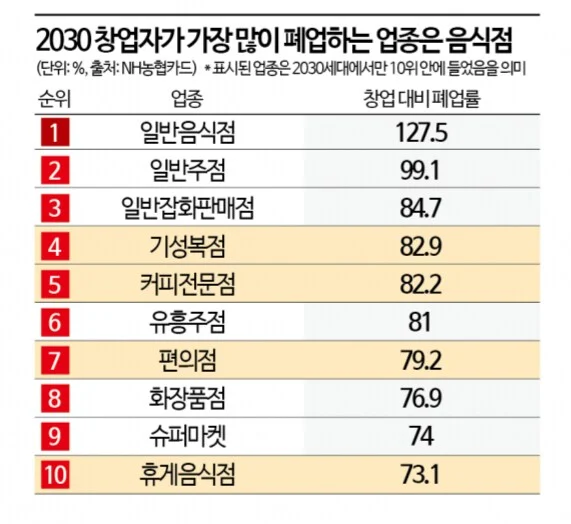 2030 청년들이 가장 많이 폐업하는 업종