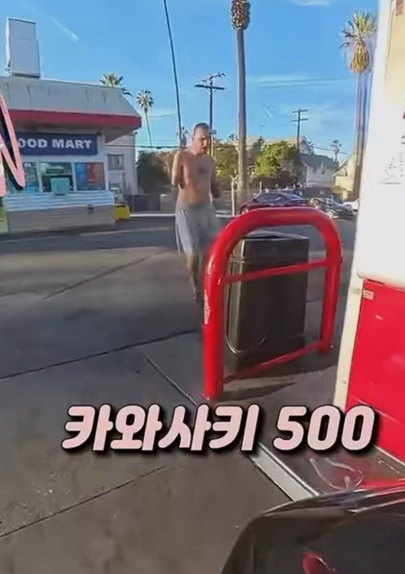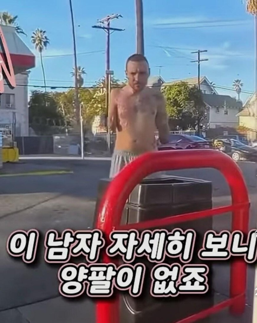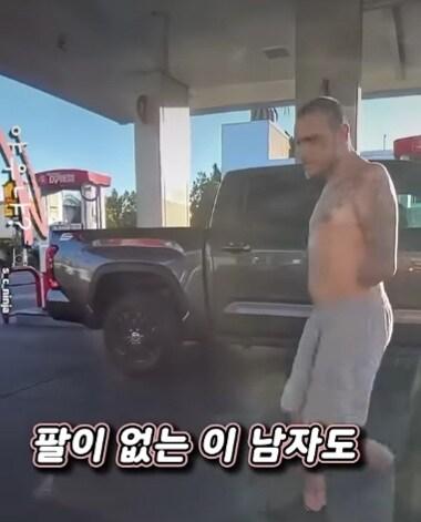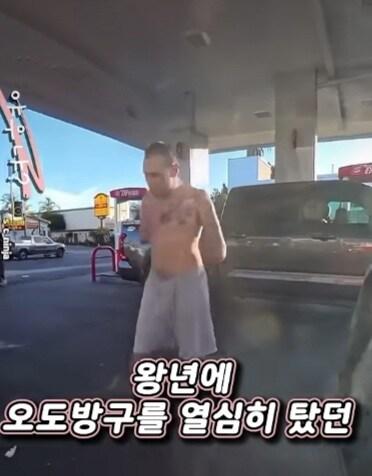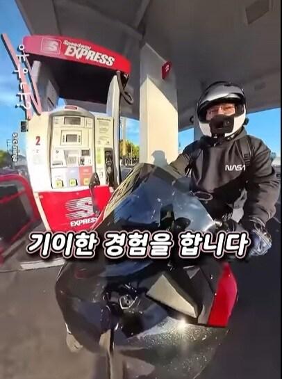 주유소에서 오토바이에 관심가지는 남자를 만남
