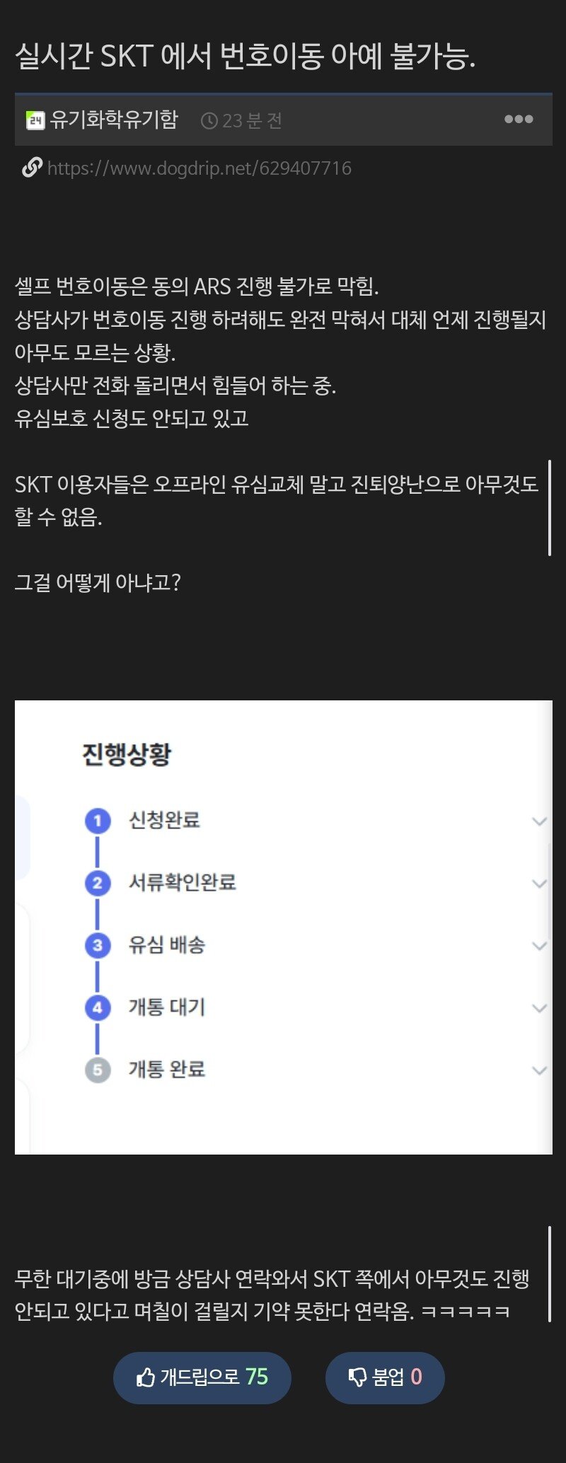 실시간 SKT에서 번호이동 불가능