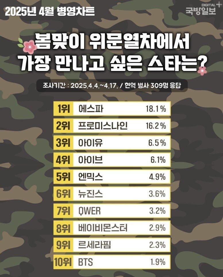병사들이 뽑은 '군통령'은…1위 에스파·2위 프로미스나인.news