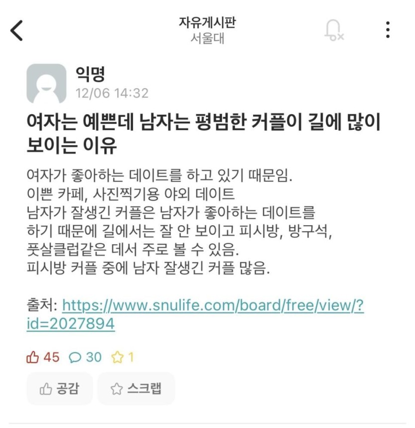 여자는 예쁜데 남자는 평범한 커플이 유독 많이 보이는 이유