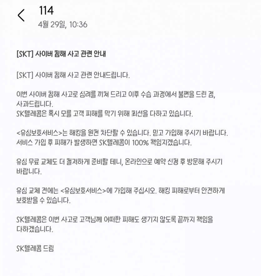 이제서야 문자 보내기 시작한 SKT