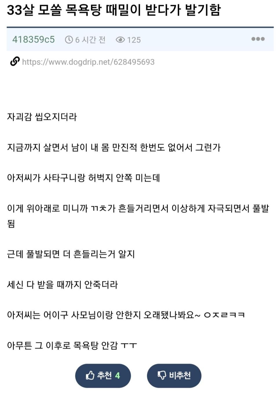 목욕탕 때밀이 받다가 ㅂㄱ한 33살 모쏠 익붕이.jpg
