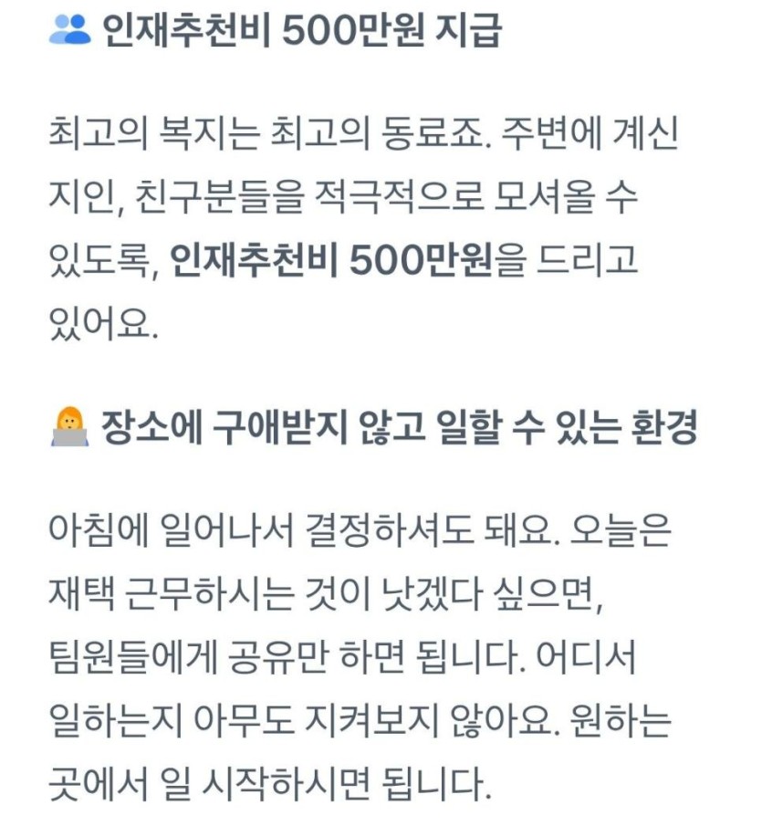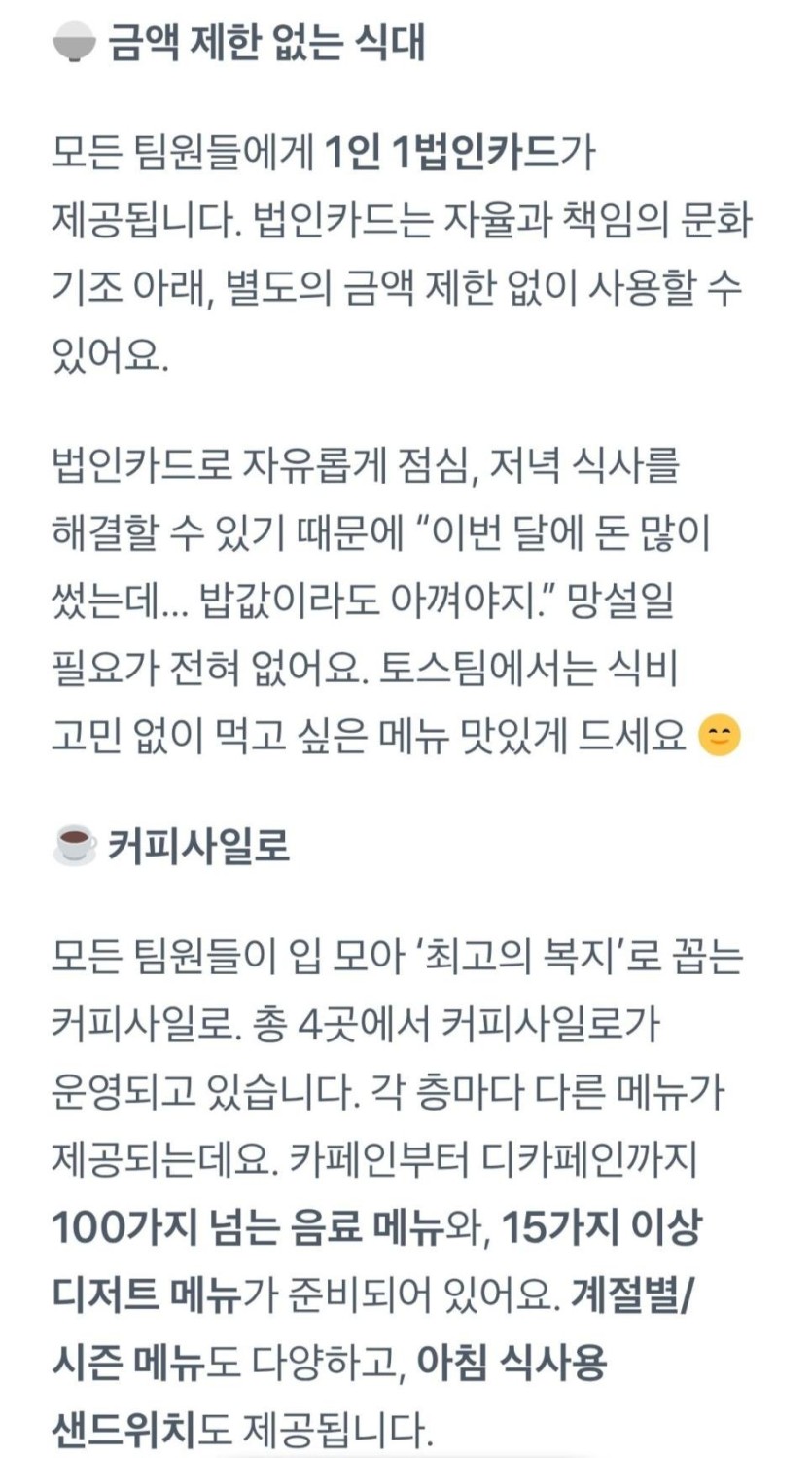 최근 취업시장에서 1티어라는 회사 ㄷㄷ.jpg rh1 0 107 0 2025.04.28 22:15 동종업계 최상위권 급여 매우 높은 성과급 1인 1법카를 비롯한 최고수준 복지 강남/역삼역 바로 옆에 위치해서 출퇴근 용이 비포괄이라 열심히 일한만큼 더 입금되는 월급 능력있고 열려있는, 소통 가능한 대표 평균나이 32세로 젊은 분위기 등등 0