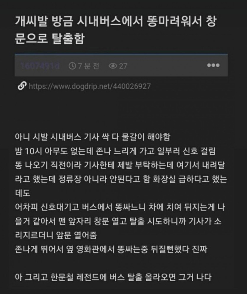 시내버스에서 똥마려워서 창문으로 탈출함