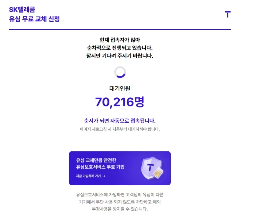 sk 템레콤 유심 무료 교체 예약 대기자수