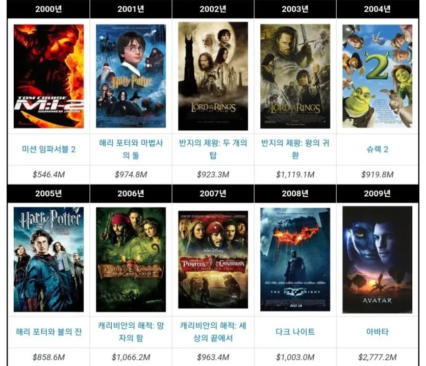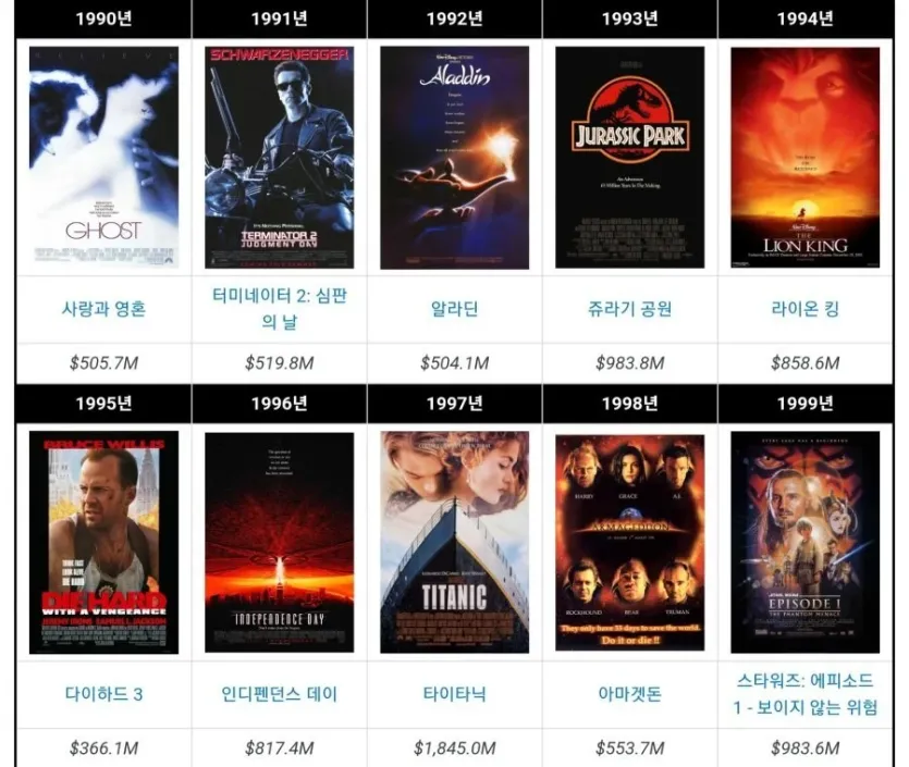 연도별 박스오피스 1위 모음