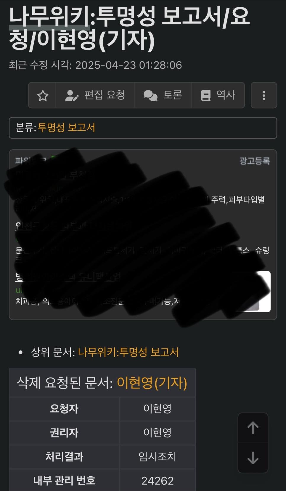 SBS 이현영 나무위키 삭제요청했나본데요?ㅋㅋㅋ