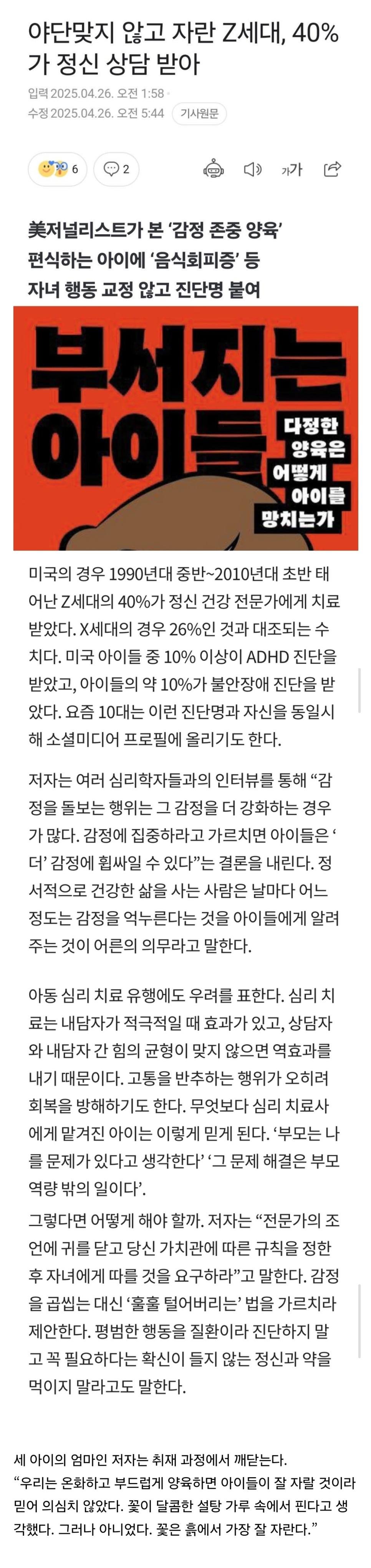 야단맞지 않고 자란 Z세대, 40%가 정신 상담 받아
