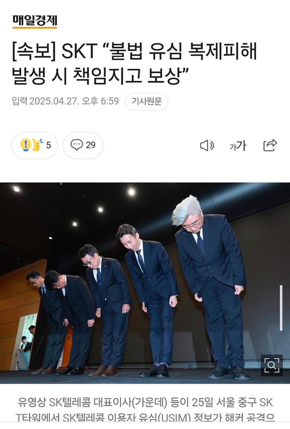 속보) skt보상 약속