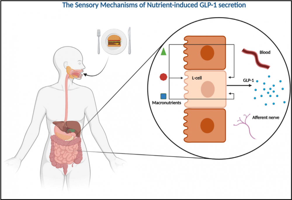[1] Hjørne, A.P.; Modvig, I.M.; Holst, J.J. The Sensory Mechanisms of Nutrient-Induced GLP-1 Secretion. Metabolites 2022, 12, 420. https://doi.org/10.3390/metabo12050420