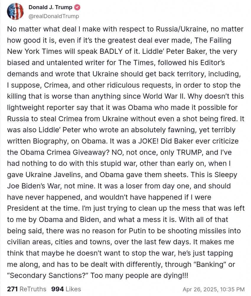 트럼프 "러시아는 전쟁을 끝낼 생각이 전혀 없다"