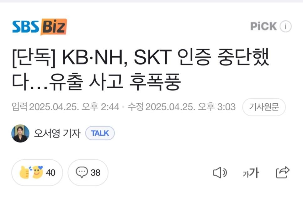 일부 금융권에서 skt 휴대폰 인증 차단조치 ㄷㄷㄷ