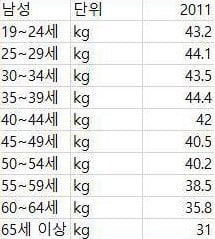 짤은 남성 연령대별 악력 평균인데