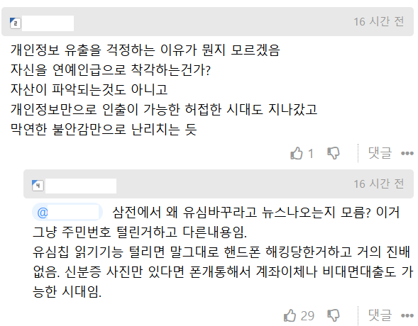 "개인정보 유출을 왜 걱정함? 니가 연예인급임? ㅋㅋ"