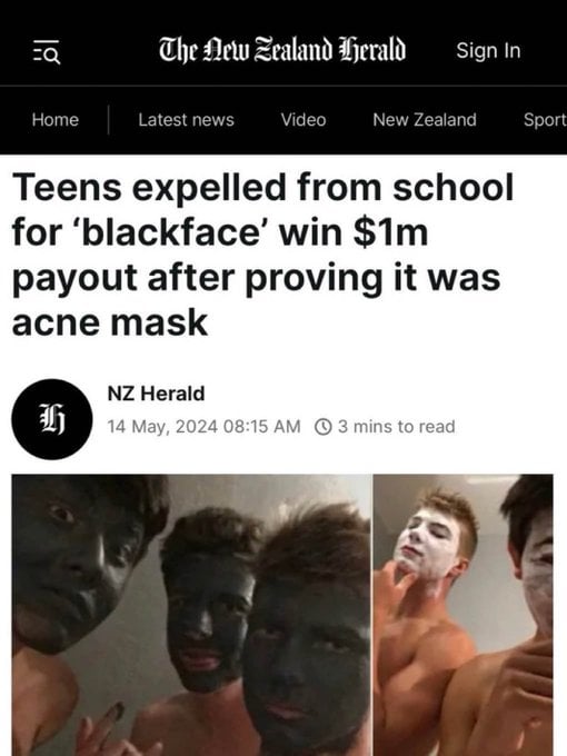 블랙페이스라고 학교에서 제대로 된 절차 없이 퇴학당함