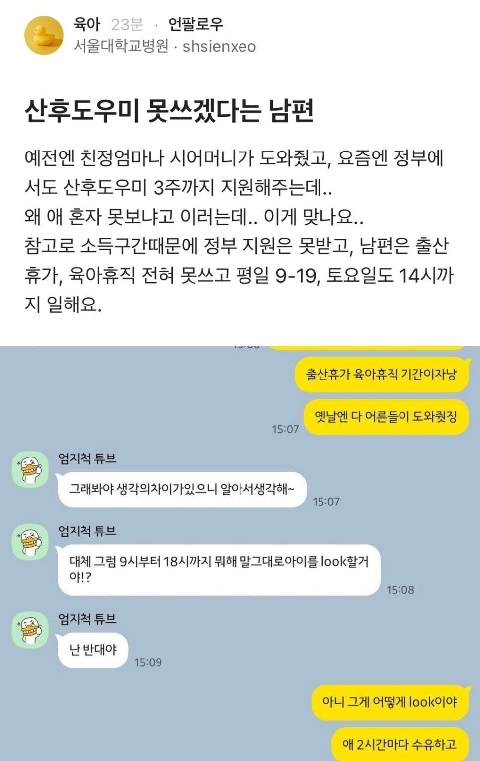 [블라인드] 산후도우미 못쓰겠다는 남편