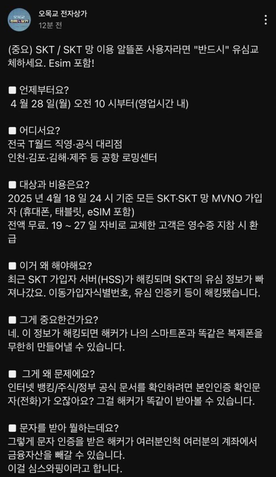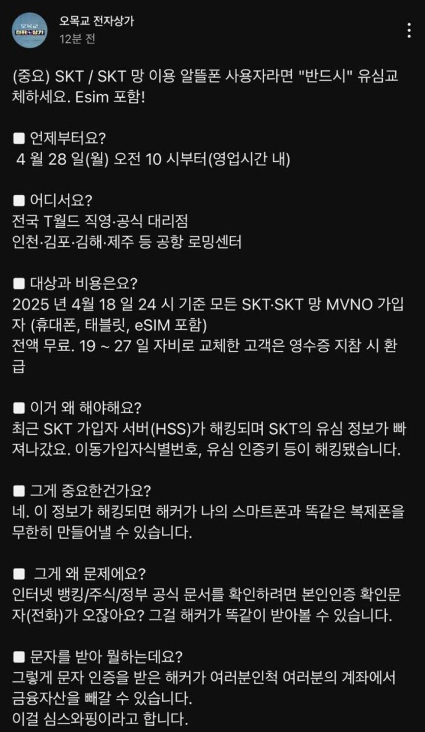 SKT사용자가 유심을 무조건 바꿔야 하는 이유