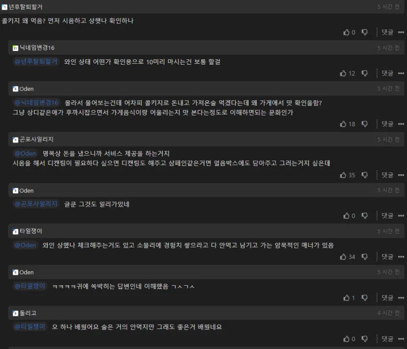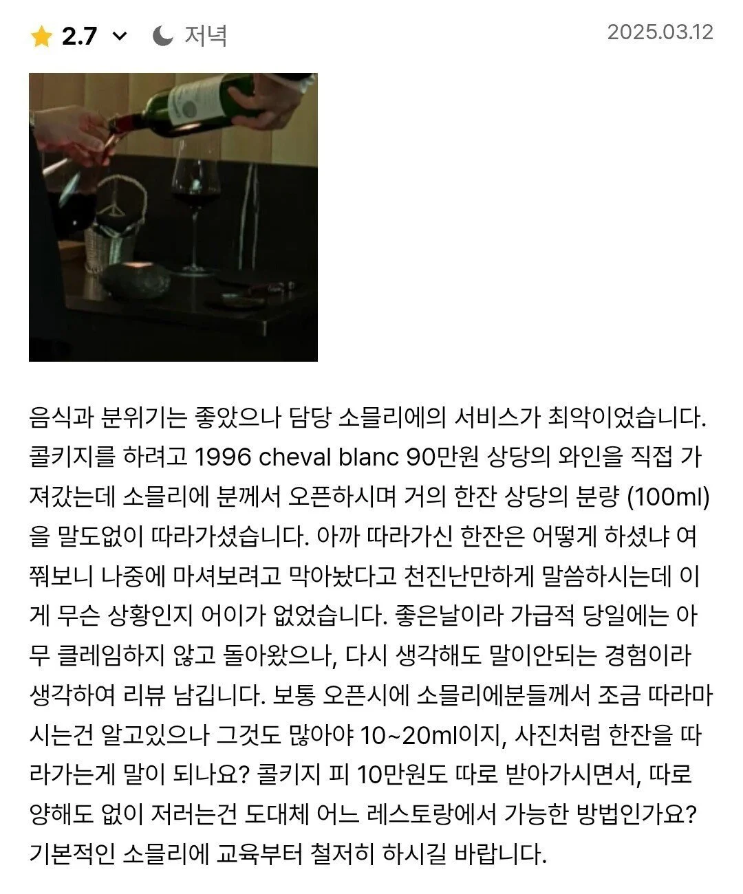 오늘의 상식 "콜키지한 와인은 소믈리에가 조금 가져간다."