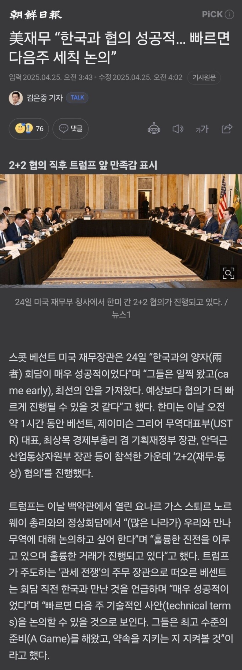 미국 정부 “한국과 협의 성공적 , 빠르면 다음주 세칙 논의” rh1 0 97 0 2025.04.25 13:15 현재 한국과의 협상 부분에 대해서 트럼프가 만족을 하고 있다는 늬앙스가 오히려 더욱 무섭네 미국 정부 “한국과 협의 성공적 , 빠르면 다음주 세칙 논의” 0