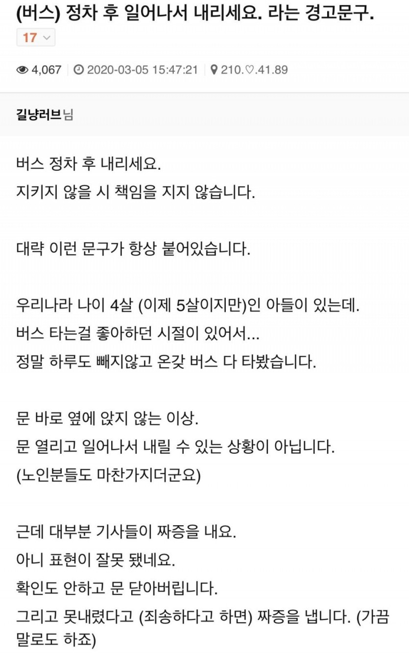 기사들이 짜증낸다는 “정차 후 일어나서 내리세요”