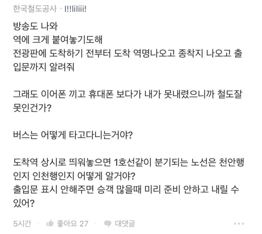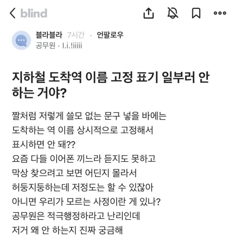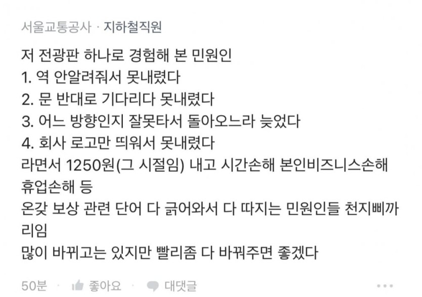 지하철 도착역 알기어렵다는 불만에 현직자들 반응 논란