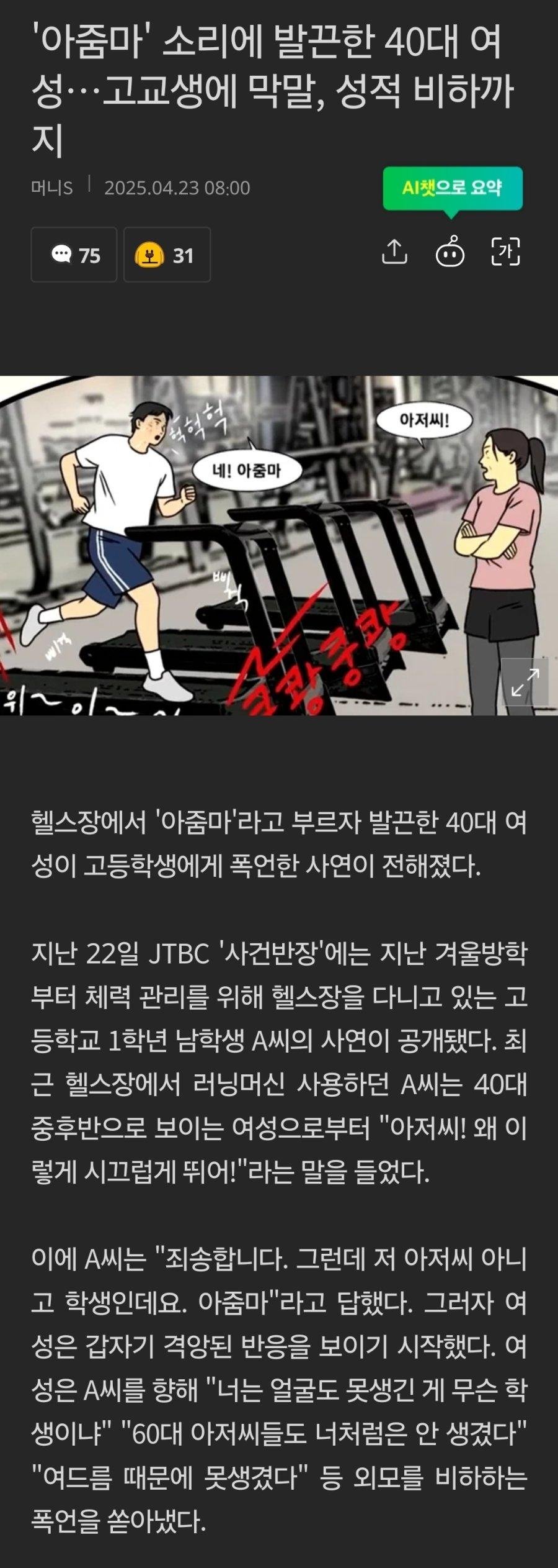 '아줌마' 소리에 발끈한 40대 여성 고교생에 막말 ㄷ.jpg