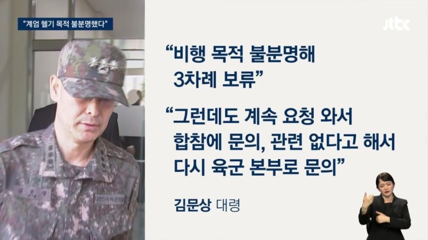 '헬기 진입 거부' 대령 "목적 모르는 상태서 승인할 수 없었다"