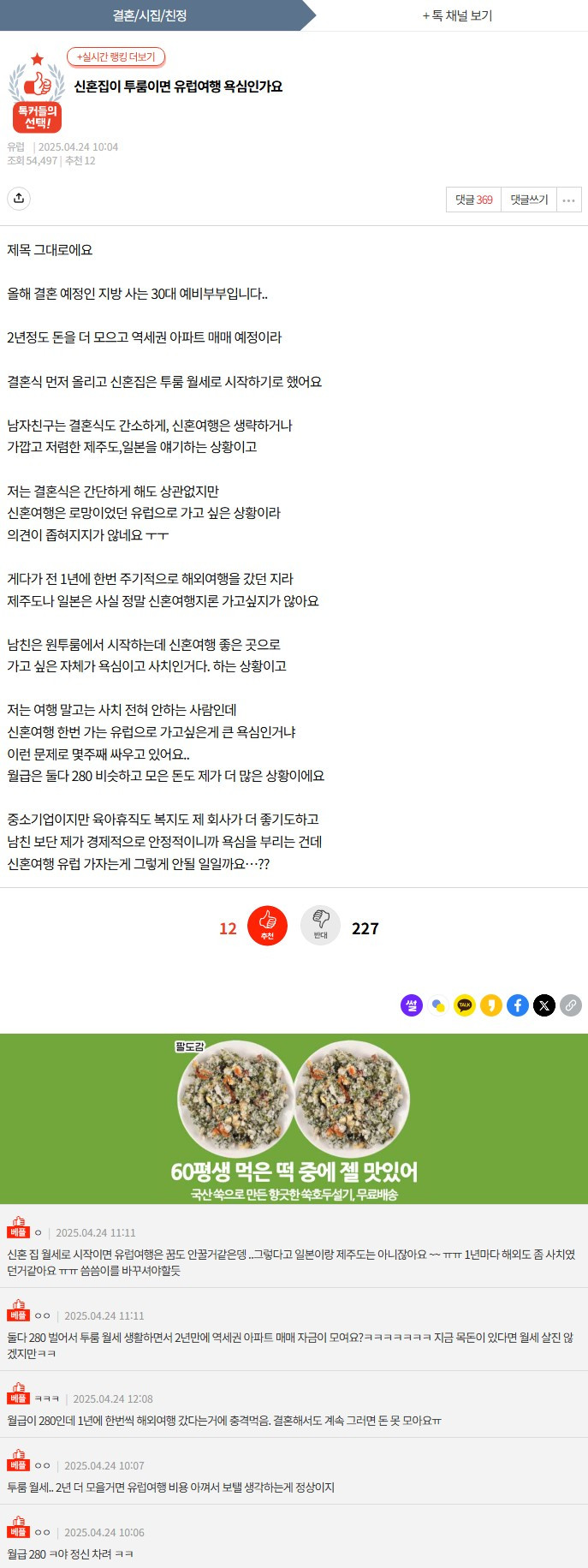 신혼집이 투룸이면 유럽여행 욕심인가요