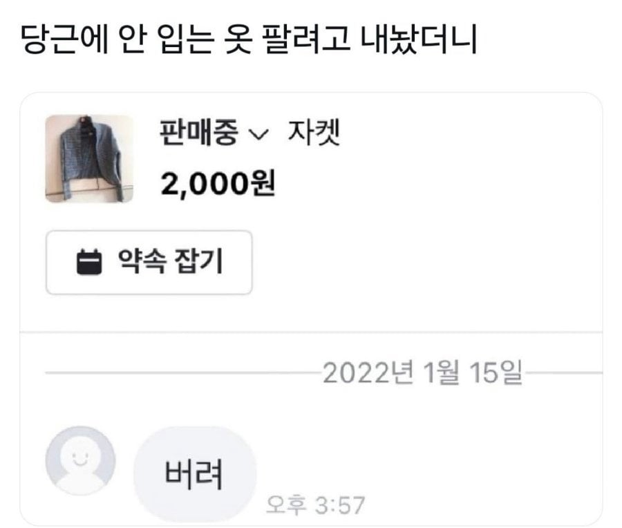 당근에 안 입는 옷 팔려고 내놨더니
