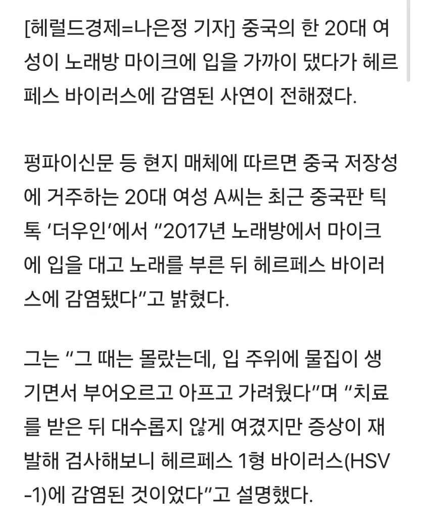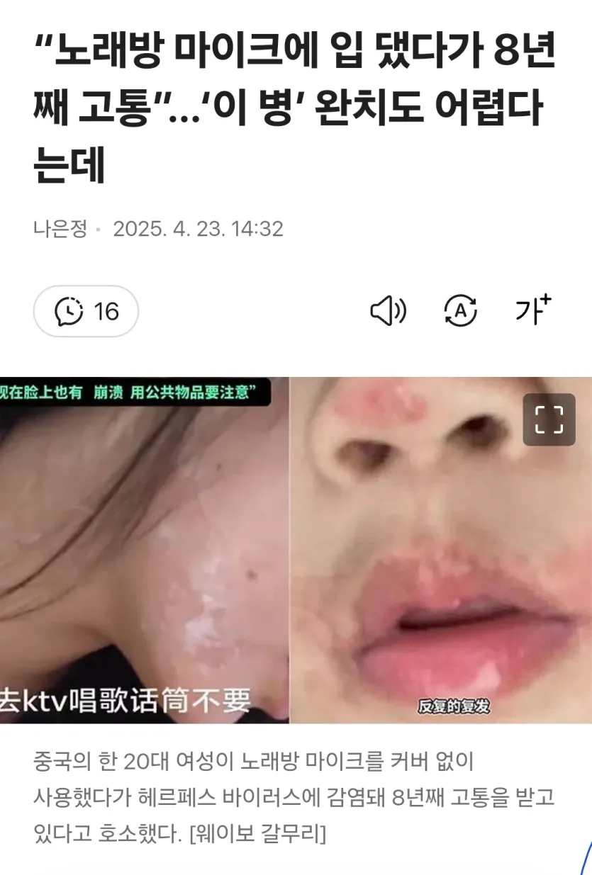 “노래방 마이크에 입 댔다가 8년째 고통”