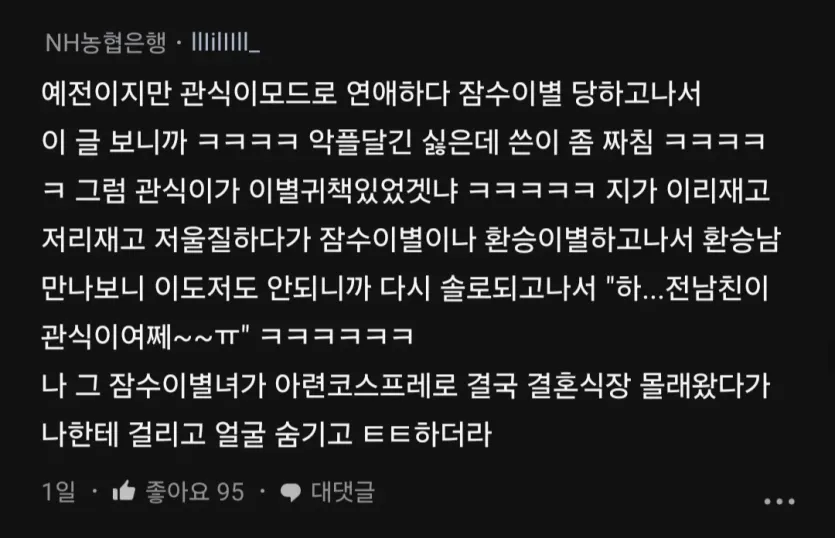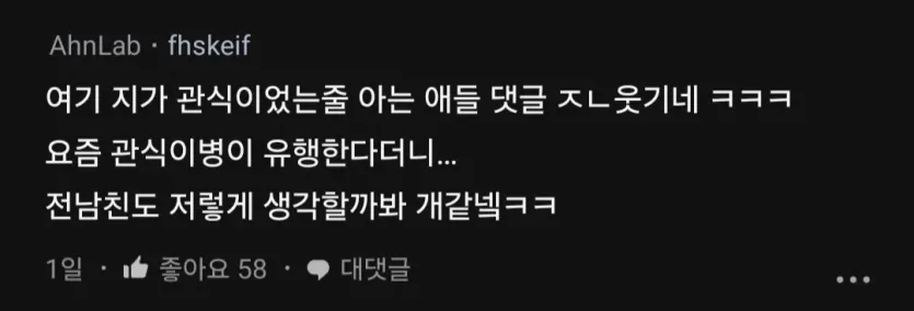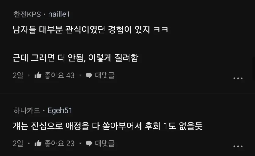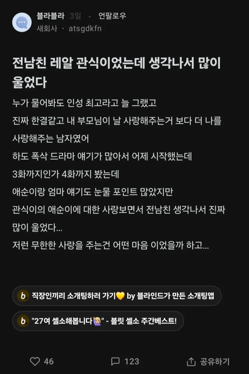전남친 레알 관식이었는데 생각나서 많이 울었다