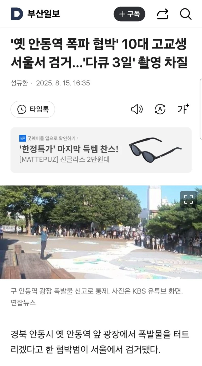 옛 안동역 폭파 협박 O대 고교생 서울서 검거 rotla 0 125 0 2025.08.21 22:38 참고글 http://todayhumor.com/?humordata_2041088 0