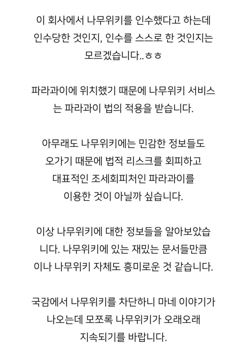 나무위키 인수한 회사 본사 위치