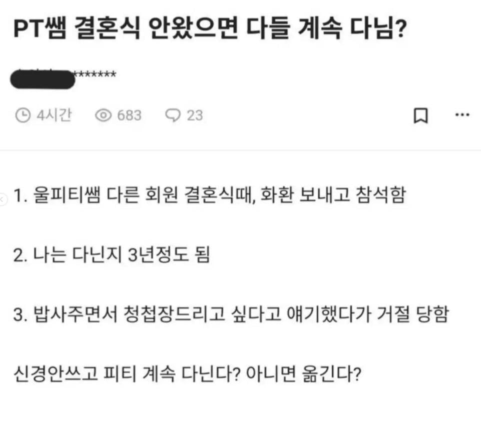 PT쌤이 내 청첩장 거절함