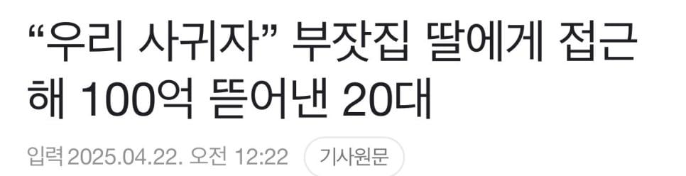 우리 사귀자, 부잣집 딸에 접근해 100억 뜯어낸 20대