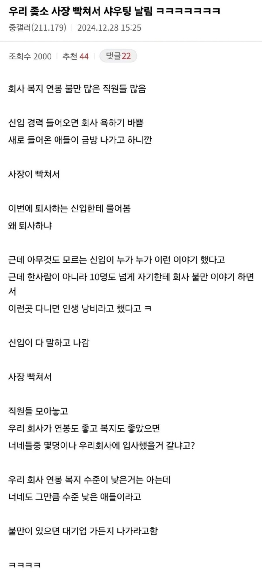 개빡쳐서 샤우팅 날린 중소기업 사장 ㄷㄷ.jpg
