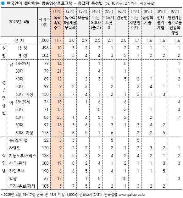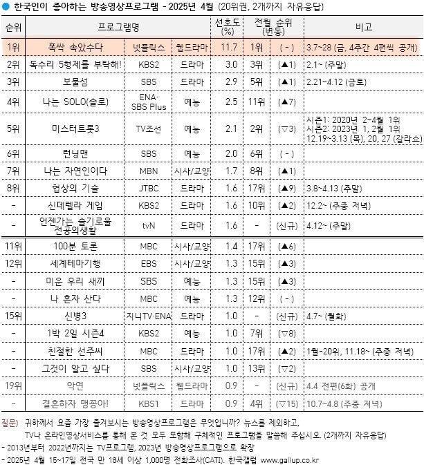 한국인이 가장 좋아하는 프로그램 4월 1위 폭싹 속았수다